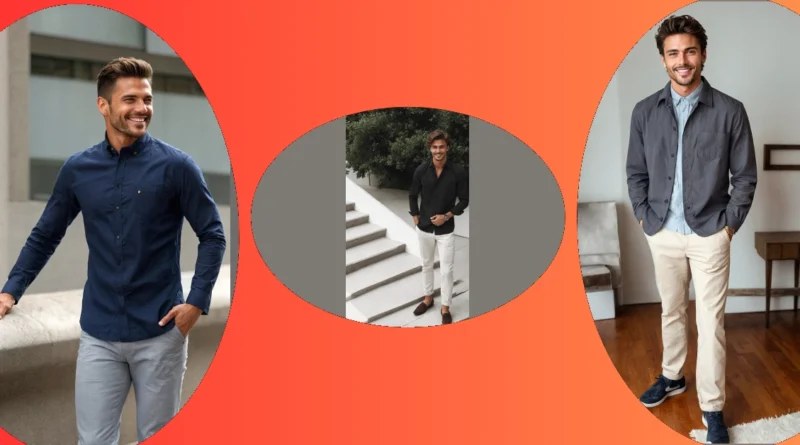 Notice how the light pants pop against the black shirt? It’s a classic combo that makes the whole shirt outfit just work, and he even gets bonus points for the perfectly cuffed ankles showing off those super comfy-looking brown loafers. Plus, that confident smile? It’s probably because he knows he looks good and feels great in his chosen threads. Even his hair looks like it had its own personal stylist, making this whole vibe proof that a well-put-together shirt outfit can make you ready to take on the day with style and a grin!