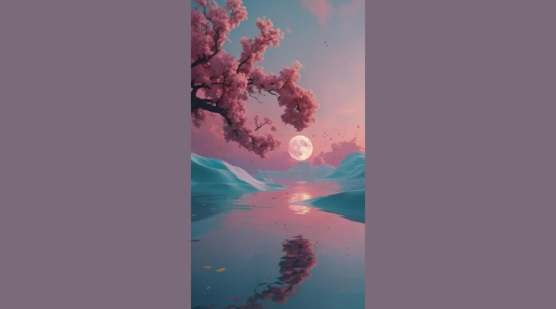 Get ready to have your screen look totally adorable! This cute wallpaper photo is like a sweet dream came to life, packed with fluffy pink cherry blossoms that look like candy floss clouds and a giant, friendly moon hanging out like it’s saying hello. The water is so calm it mirrors everything perfectly, making the whole scene double the cuteness. Slapping this photo on your phone or computer background is pretty much guaranteed to give you a little happy boost every time you see it.