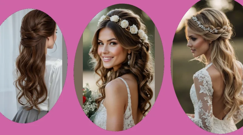 First up, we have the classic half-up half-down style—a go-to for brides who want to showcase their gorgeous locks while keeping it classy and elegant. This style offers the best of both worlds, allowing you to flaunt your long hair in a stylish yet simple way. Imagine walking towards your forever partner with a delicate veil that highlights those cascading curls or straight locks.