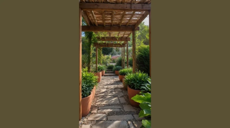 Forget boring old garden paths that only lead to, well, more garden! This incredible setup with its leafy, shaded pergola is practically begging for an edible upgrade. Just imagine strolling down this cool stone path, not just enjoying the view, but also eyeing up your next snack. Those sturdy wooden beams? They’re perfect for training grapevines, kiwi, or even passionfruit, turning your ceiling into a delicious, hanging fruit buffet. Who needs a snack drawer when your entire overhead is a treat waiting to happen? It’s like nature’s own drive-thru, but way cooler and with zero plastic waste.