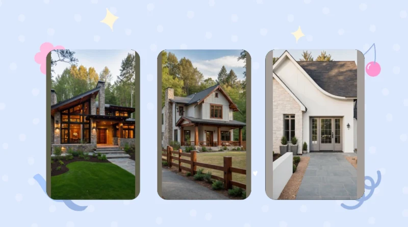Beyond the wild roof antics, this house is serving up some serious style points. Those big, bright grey doors practically beg you to waltz right in, probably promising snacks and excellent Wi-Fi. The mix of the crisp white siding with the cool, light stone gives it this super fresh look, like it just walked out of a magazine, but not in a snobby way – more like ‘come hang out’ way. It’s the kind of craftsmanship that makes a house feel solid and welcoming, with thoughtful touches like those cute little plants by the door. You can just tell a lot of care went into designing a home where every detail, from the stonework to that fancy walkway, says, “Welcome to awesome!”