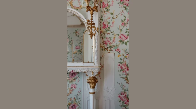 This image is giving major “cottagecore” vibes, but with a touch of extra elegance. The wallpaper looks like it’s straight out of a fairytale, with all those delicate flowers and swirling vines. It reminds me of a princess’s bedroom or maybe even a fancy tea party!