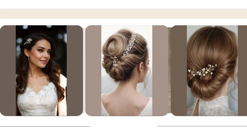 Planning a wedding can feel like trying to solve a Rubik’s Cube while blindfolded, especially when it comes to finding the perfect bridal hair ideas. But don’t stress, because this fabulous updo is here to save the day (and your sanity!). Just look at that amazing hairpiece! It’s practically a tiara’s cooler, more laid-back cousin, sparkling so much you might need sunglasses to appreciate its full glory. It definitely says, “I’m getting married, and my hair is having its own sparkly party!”