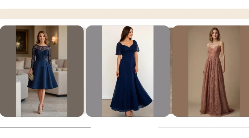 Choosing a wedding guest outfit often feels like a secret mission: look amazing, but don’t accidentally become the main event (that’s the bride’s job, obviously!). But check out this total winner! This navy blue dress, with its gorgeous lace sleeves and a skirt that’s practically begging for a spin on the dance floor, hits all the right notes. It’s elegant enough for all those ‘say cheese!’ moments, but comfy enough that you won’t be silently planning your escape to sweatpants before the first toast. You’ll be ready for mingling, munching, and maybe even busting out your best moves without a single outfit worry.