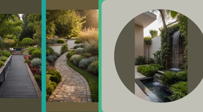 Beyond the grand green staircase, there’s even a super cool water feature with stepping stones – perfect for a dramatic entrance or practicing your ninja moves without getting too wet. And look at all those different plants, from the tall, pointy trees in the back that look like they’re guarding the garden’s secrets, to the fluffy grasses that just beg you to plop down for a nap. This isn’t your grandma’s backyard; it’s a bonafide dream garden, probably designed by someone who secretly believes plants deserve their own luxury resort. Just try not to get lost trying to find the snack bar!