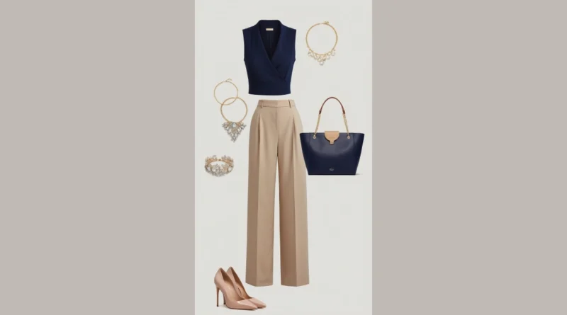 Forget everything you thought you knew about “dressing up” being uncomfortable, because these wide-leg trousers are here to blow your mind! Seriously, it’s like someone secretly made your pajamas fashionable. You can do a full lunge in these babies without worrying about ripping a seam, which is great for, you know, sudden dance breaks or quickly reaching that dropped pencil. Paired with that super chic navy wrap top, you’ll look like you just walked off a fashion magazine cover, but feel like you’re wrapped in a cloud. It’s the ultimate fashion hack for looking totally put-together without feeling squished.