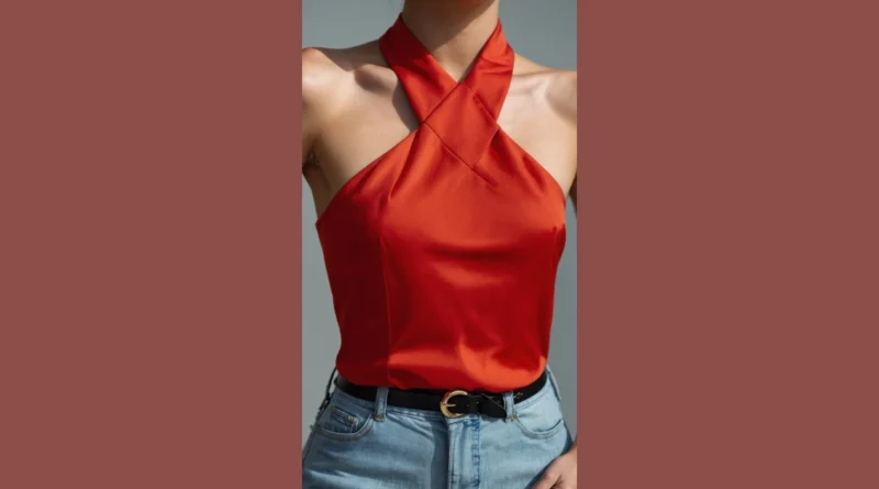 Pairing that superstar red top with some classic light-wash jeans? Genius! It’s like the fashion equivalent of peanut butter and jelly – they just belong together. Throw on a sleek black belt with a shiny buckle, and suddenly you’re ready for anything, from grabbing a smoothie with your besties to hitting a movie night. This halter top women outfit shows off that you can be super trendy without even trying too hard, leaving you more time to worry about important things, like what’s for dinner or who gets the last slice of pizza.