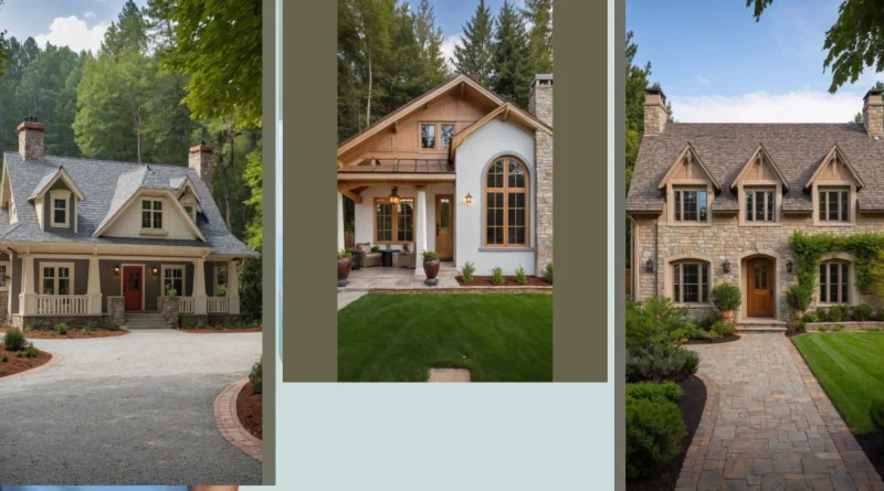 And let’s talk about those epic windows and that balcony! Imagine having your own private observation deck, perfect for spying on the neighbors (in a friendly way, of course) or just soaking up some sun. The mix of dark wood siding, cream-colored walls, and that cool stacked stone base really shows off the ‘craftsman’ love for different textures, making the house look super custom and fancy, not just a plain box. With all those cool pathways and different sections, you could probably invent a whole new sport involving navigating your backyard – just try not to trip on the perfectly manicured bushes!