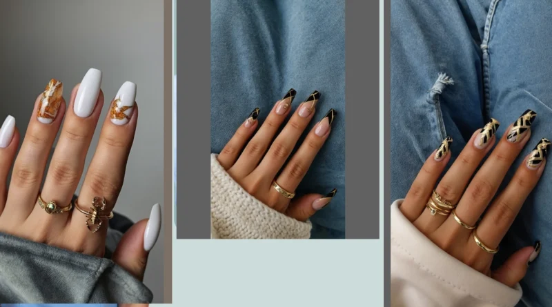 These nails are like a scorpion: they’re sleek, they’re stylish, and they’ve got a bit of a bite. The white base is super chic, like a blank canvas ready for your personality to shine. And those gold accents? They’re like a little bit of sparkle, just enough to make you stand out from the crowd. You know, like a scorpion sneaking up on its prey, ready to pounce.